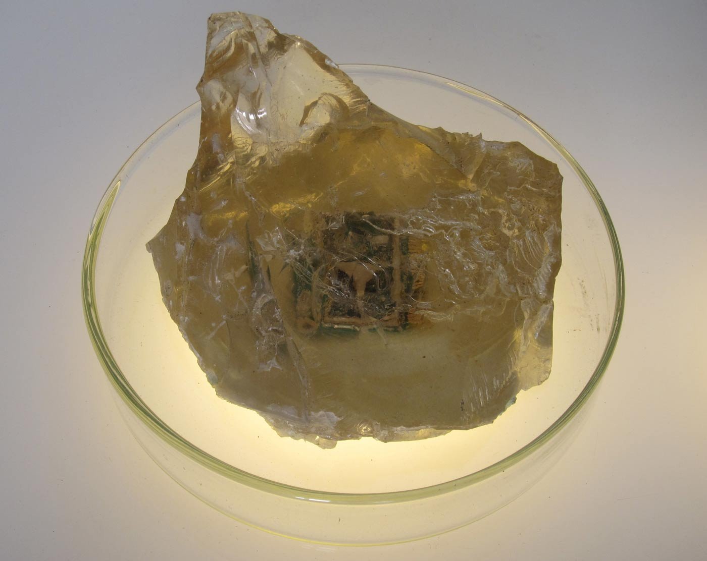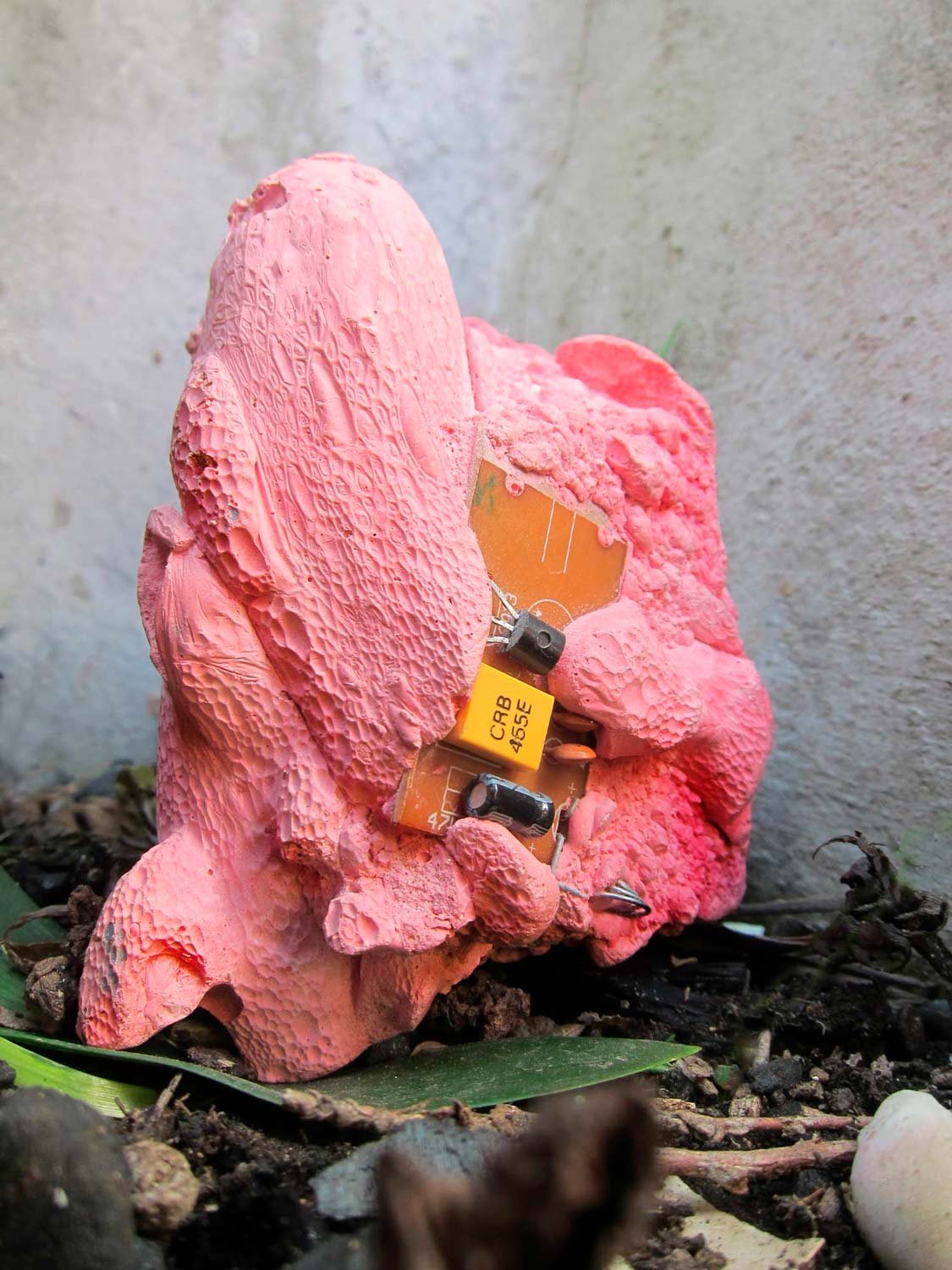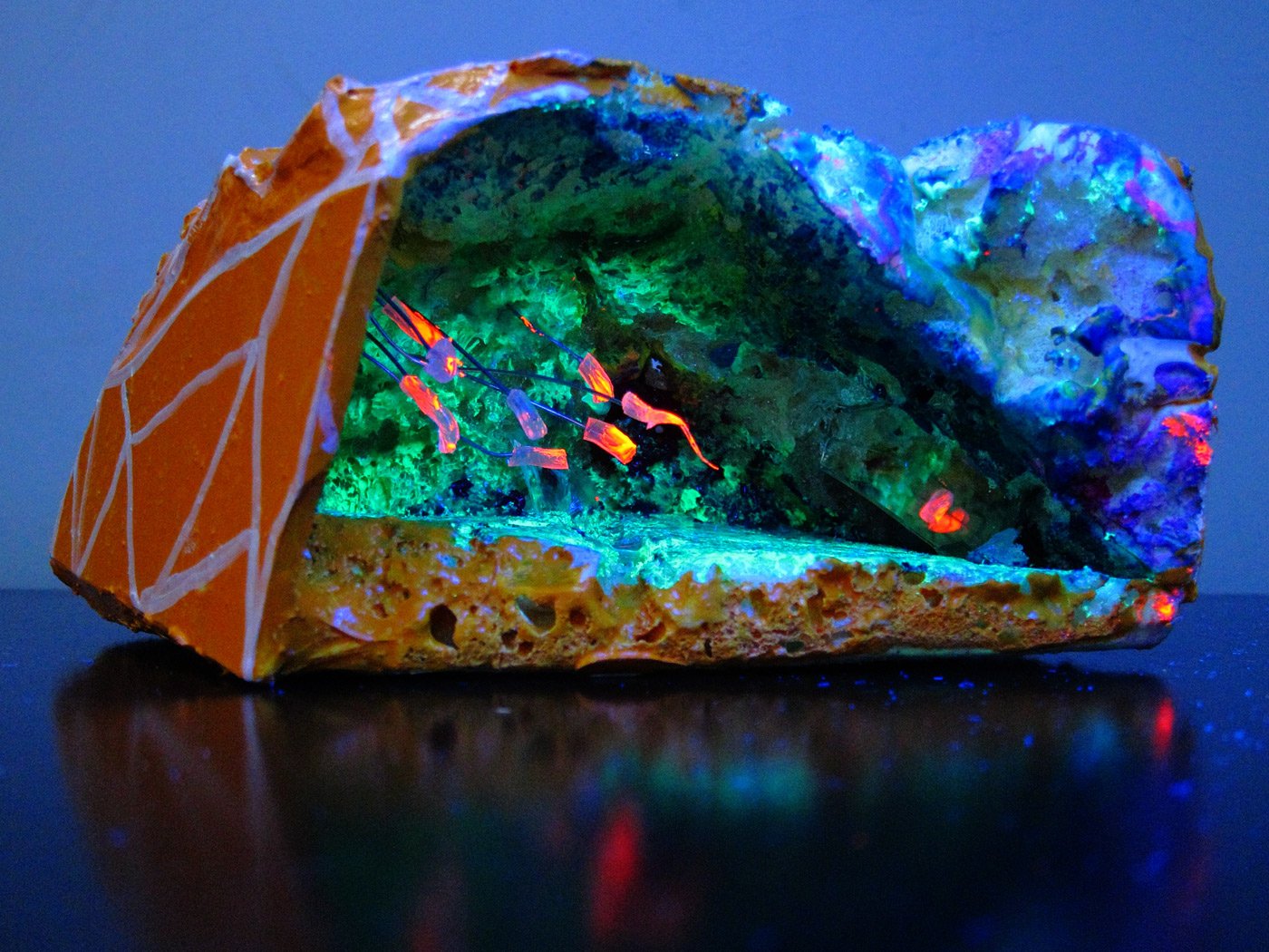 Le piccole sculture in mostra amalgamano forme di diversa natura, come calchi di denti, ossa, rami e foglie, ma anche plastiche, cavi, imballaggi e scarti tecnologici. Alcuni vengono mostrati archiviati nei cassetti, come classificati, altri a fare scena sulla scrivania, insieme a bottiglie, pinzette, disegni, libri e dipinti. Si riferiscono a quel luogo dove lo scienziato contempla e indaga i suoi oggetti di studio, a una sala di dissezione, a un laboratorio, a un gabinetto di curiosità, all’angolo di un museo di scienze naturali, o semplicemente alla scrivania di un dilettante di mondi da sogno.